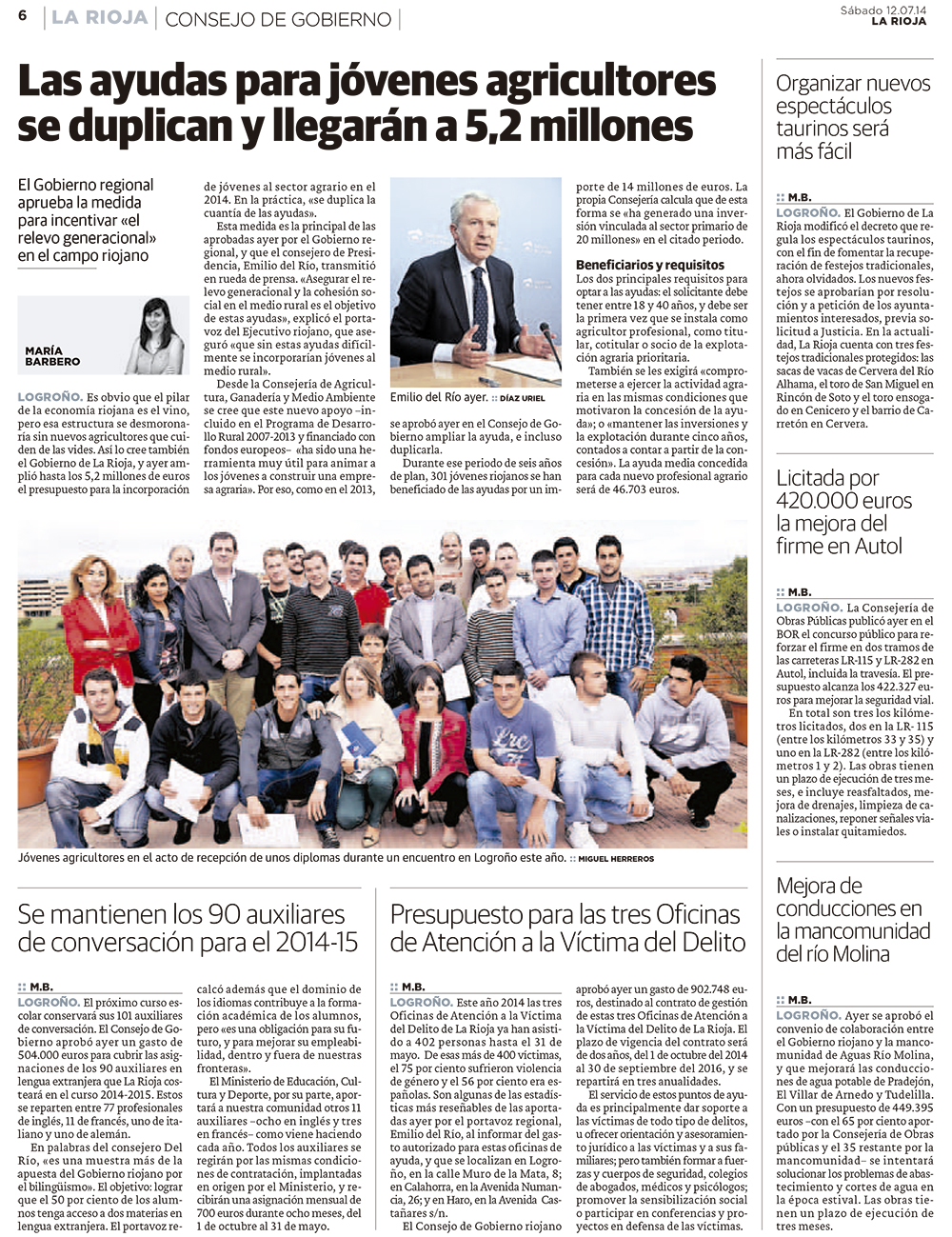 El vieres volví a cubrir el Consejo de Gobierno riojano y el sábado 12 salió mi página: