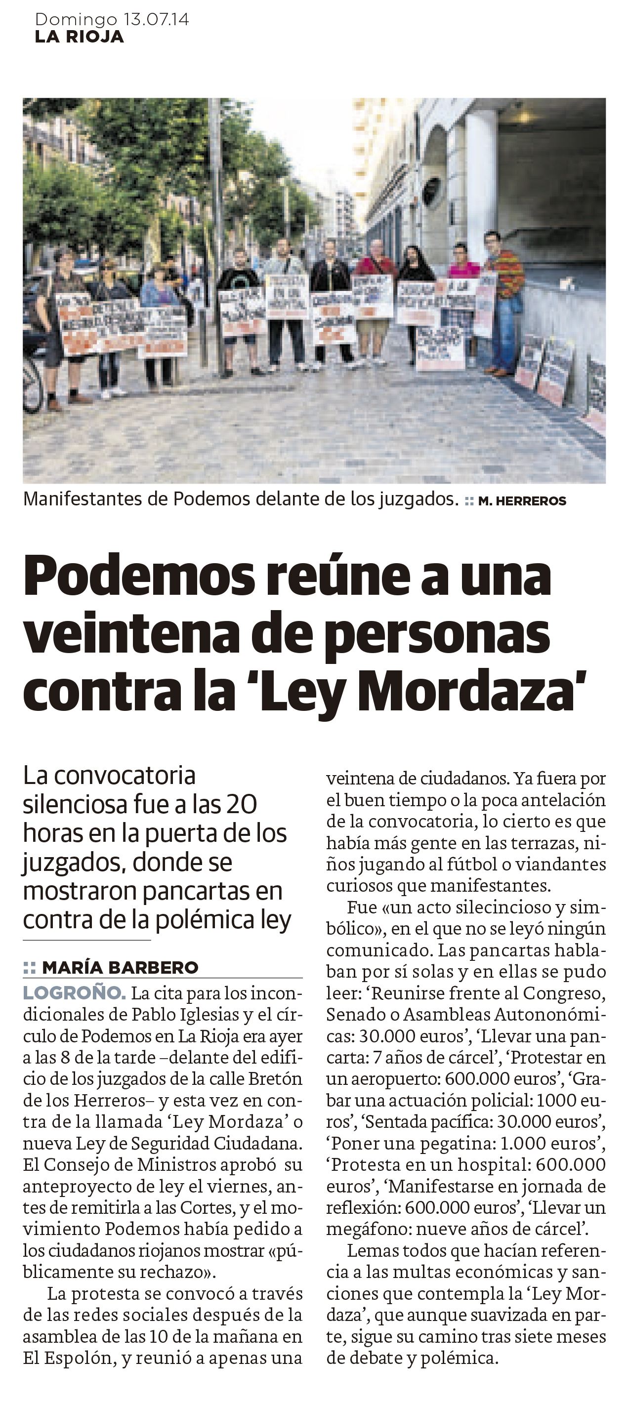 Y el sábado me tocó ir a la convocatoria de Podemos contra la Ley Mordaza (y salió también en la versión digital):