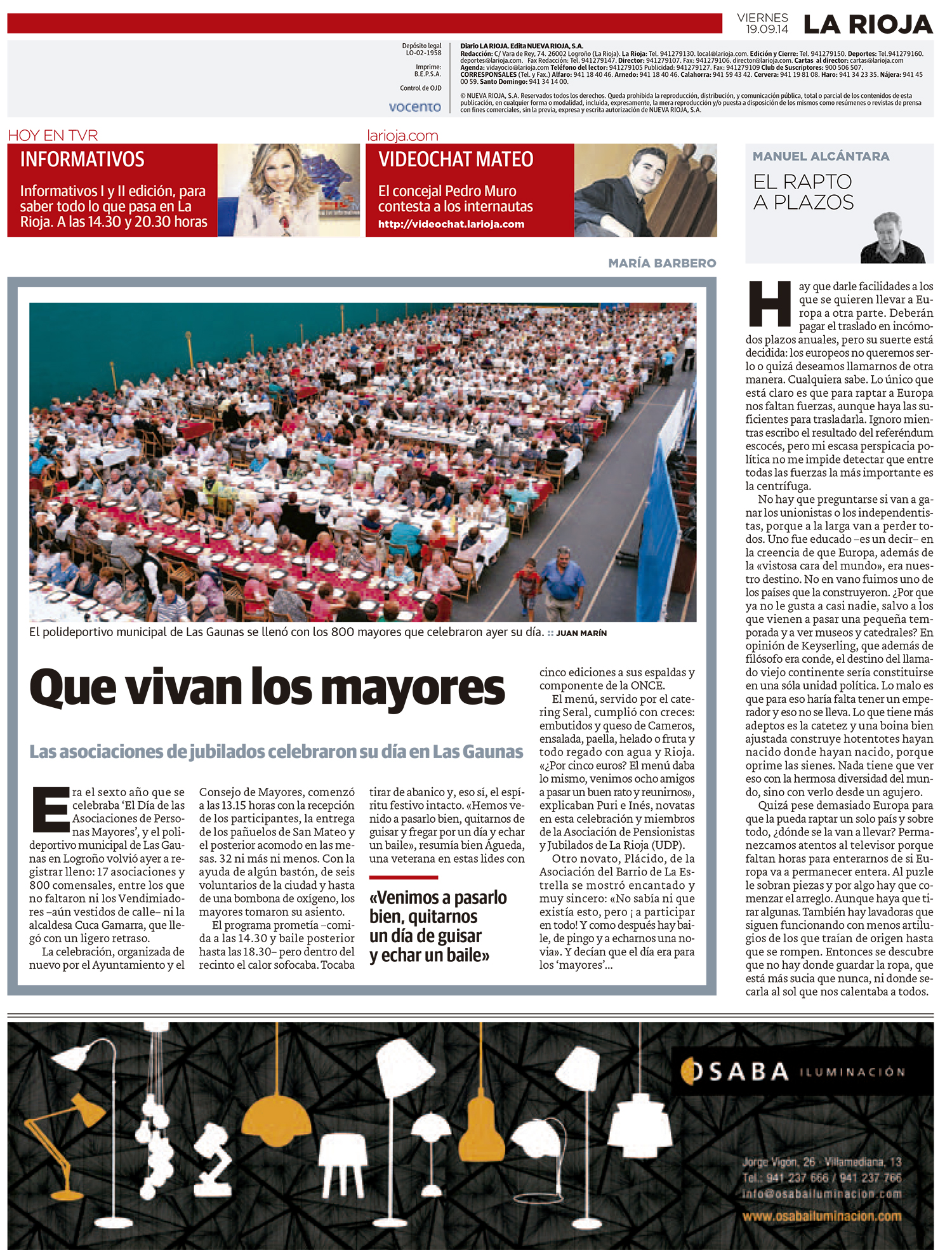 Contraportada dedicada al Día de las Asociaciones de Mayores en Logroño: