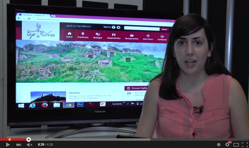 Vídeo que realicé para la presentación de TopRibera y su web www.topriberadelduero.com, el 12 de junio de 2014 en la Plaza Mayor de Aranda de Duero. Como veis en el vídeo se trata de un buscador y plataforma digital de promoción turística de la Ribera del Duero con información sobre sus bodegas, alojamientos, restaurantes, enoturismo, ocio, etc. ideado por Viajes Bayo y Yolanda Bayo.